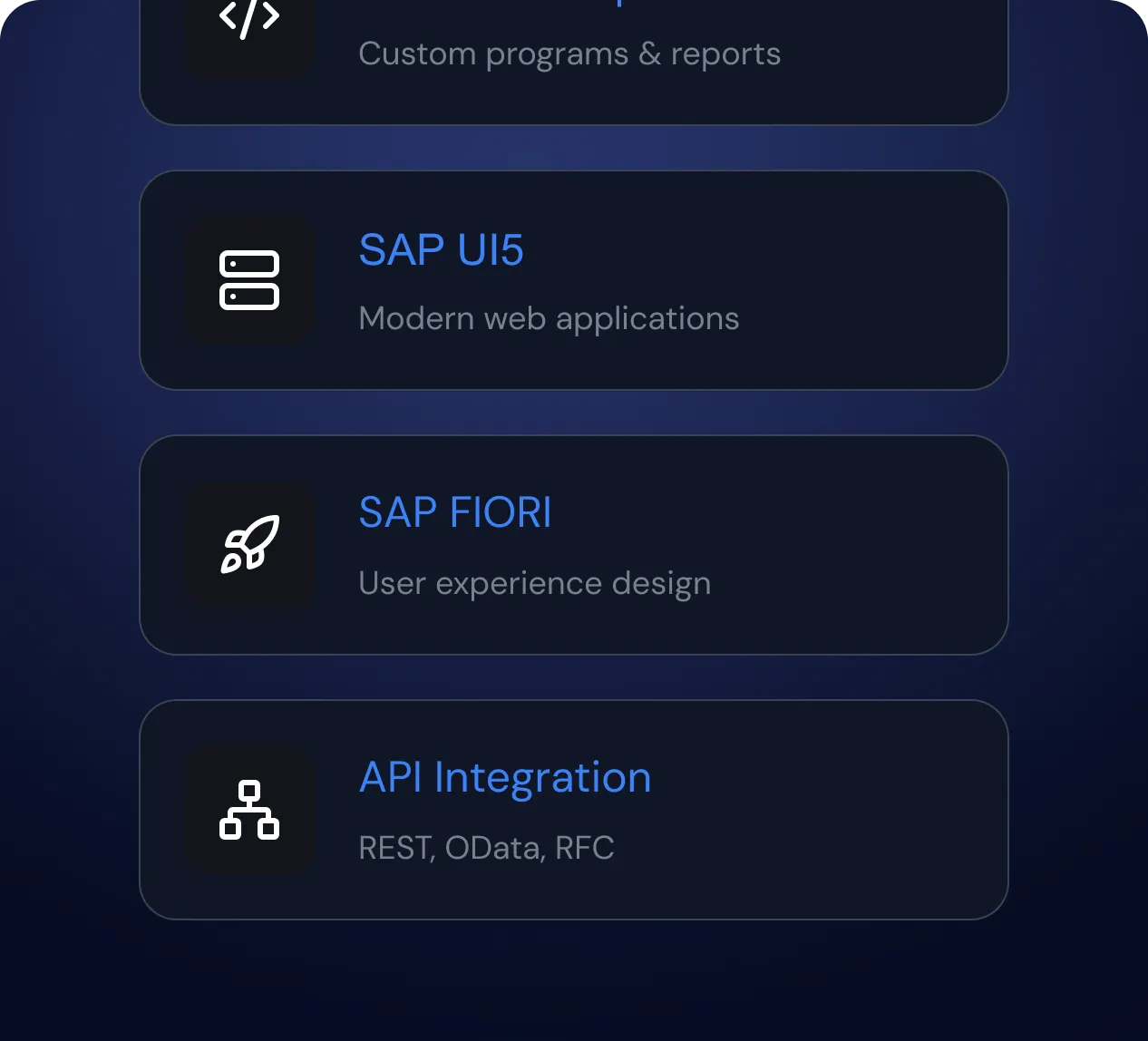 Aiutiamo le aziende a usare SAP in modo semplice ed efficace, adattandolo alle esigenze dei reali processi organizzativi, senza snaturare il vostro modo di lavorare.